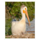 A white pelican sitting on her nest. Pelicans lay their eggs in nests on the ground. The baby pelicans walk away from their nests long before they can fly. A fun thing to watch is the babies going back and forth between nests. The adults feed the babies, even if the baby does not belong to them.