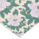 This is a pattern of graphic white peonies with green leaves on a light beige background.