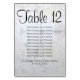 Make your wedding reception beautiful with these table number cards. They feature a simple yet elegant design with black text over a background of reflecting white flowers and hearts.. These cards include seating assignments so your guests will have an easy time finding the right table.