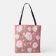 Subtle white peonies on a living coral background design by Rockett Graphics.