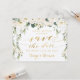 White peonies and silver greenery rustic wedding save the date mailing card.