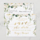 White peonies and silver greenery rustic wedding save the date enclosure postcard.