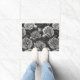 White peony flowers on dark grey doormat