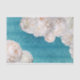 Beautiful elegant tissue paper design featuring white Peony flowers on a distressed turquoise damask pattern.