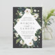 Our White Peony wedding invitation surrounds your wedding day details with a modern geometric frame of painted watercolor greenery, botanical foliage and white rose and peony flowers.