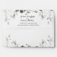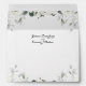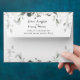 An elegant and sophisticated white wedding invitation featuring a watercolor-painted bouquet of white peony florals and silver sage eucalyptus greenery with a modern wedding swashed calligraphy font set.