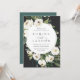 Our White Peony wedding invitation surrounds your wedding day details with a round frame of painted watercolor greenery, botanical foliage and white rose and peony flowers, set off-centre at the upper left for a fresh, modern look.