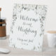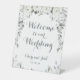 White Peony Silver Greenery 2 Welcome To Wedding Pedestal Sign