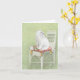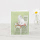White Persian cat on fancy pillow and wicker chair in wildflowers blank note card