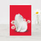 Cute white Persian cat with white daisy flowers on red for general birthday.