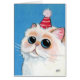 White Persian in a Party Hat - Cat Art Card