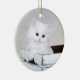 Adorable white persian kitten in a grungy white crate and a pastel background cat lovers ornament