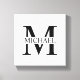 featuring personalised black monogram in classic serif font style with box of name in the middle of monogram on white background.