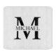 featuring personalised black monogram in classic serif font style with box of name in the middle of monogram on white background.