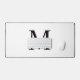 feature personalised black monogram in classic serif font style with box of name in the middle of monogram on white background.