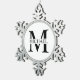featuring personalised black monogram in classic serif font style with box of name in the middle of monogram on white background.
