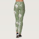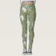 White petal flower on olive green background leggings