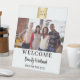A white background. Personalise and add your company, business logo, a photo, text, room number. Black text.