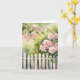 Lush, pink flowers hang over a white picket fence on this beautiful thank you card.