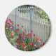 White Picket Fence With Tulips round magnet, photo by Kristie Hubler