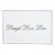 White pillow cases and the white background can be switched to any colour. The laugh, love and live in black text can be personalised to any message or name, or colour ,choice, or text is removable.
