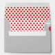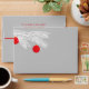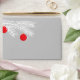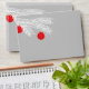 Stylish light grey Christmas card envelope, with graphics of a white pine branch with red Christmas ornaments, along the front top. Personalise the red custom return address, on the back flap, to suit your needs. Matching holiday photo greeting cards are available.