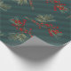 White Pine Branch Ilex Berries Slate Green Stripes Wrapping Paper