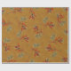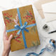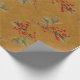 White Pine Branch Red Ilex Berries Gold Wrapping Paper