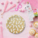 white pineapple pattern on gold glitter paper plate