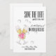 Feminine beautiful design combines elegant white background with amazing modern typography and pink flowers as well as champagne glasses. Save The Date card for your wedding is important and you deserve the best one. This elegant and luxurious design will be perfect.