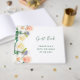 A guest book for a romantic 50th (or any age) birthday party. Decorated with large, lush watercolored summer flowers, florals roses and peonies in white, coral and rose gold. Chic white background. The title: Guest Book is written with a modern hand lettered style script. Green coloured letters.