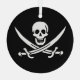 White, Pirate Flag Calico Jack, Skull & Cutlass Glass Tree Decoration