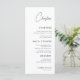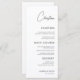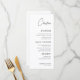 Minimalist white menu with a custom script guest name, designed to serve as both a place card and dining guide. Perfect for weddings, rehearsal dinners, bridal showers, or engagement parties, this versatile card combines personalisation with modern elegance. The black-and-white layout and chic typography create a timeless, stylish detail that enhances table settings for any sophisticated celebration.