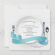 White dinner plate with silverware and pastel aqua blue ribbon banner for anniversary dinner party invitation