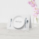 white dinner plate with silverware on soft textured background for thank you to host/hostess