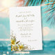 Custom and elegant, Hawaiian plumeria / frangipani wedding invitations. Gold and white colours with plumeria flowers and gold swirls in the bottom corner. Plain white cards have easy to use templates with printed and script fonts. Wording is a dark gold colour beginning with "together with our families / parents". Lovely white plumeria flowers with yellow centres add a tropical flair to these custom cards. Upgrade to nicer paper and choose a die-cut edging if you prefer.