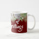 Beautiful top border garland of watercolor white poinsettias and other seasonal foliage on cranberry red background with white customisable text.