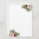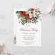 Elegant botanical Christmas party invitation featuring white poinsettia, holly with red berries and other greenery.