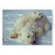This is a photograph of a white polar bear family.