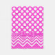 White Polka Dot And Chevron And Pink Ribbon Fleece Blanket