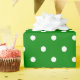 A wrapping paper built with a white polka dot pattern with a large distance between the dots on a green background. Customise the green background in an easy way.