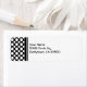A custom return address label with a fun, round font and simple white polka-dots big and small and a thin black band on the side. Click Customise It to change fonts, change background colours, label size and more, even save your design for later.