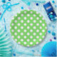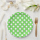 White polka dots on apple green paper plate