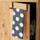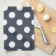 White polka dots on blue-grey tea towel