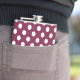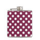 White polka dots on burgundy hip flask