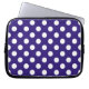 White polka dots on dark blue laptop sleeve