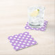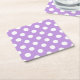 White polka dots on lilac square paper coaster