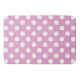 White polka dots on pale pink bath mat