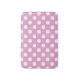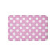 White polka dots on pale pink bath mat