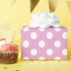 White polka dots on pale pink wrapping paper